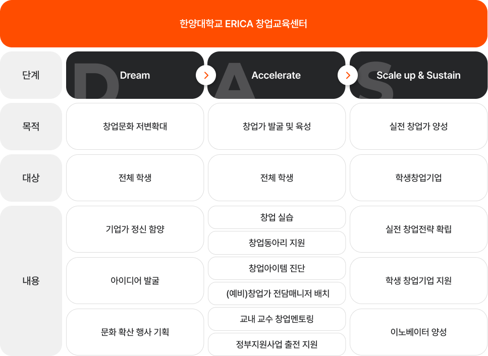 D-A-S 단계별 창업가 육성 체계